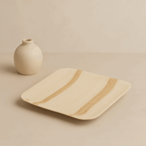 Ces assiettes sont fabriquées en feuilles de palmier, un matériau écologique issu de la transformation des feuilles de palmier qui tombent naturellement de la plante. Chaque assiette est donc différente des autres, ce qui rend chaque plat unique.