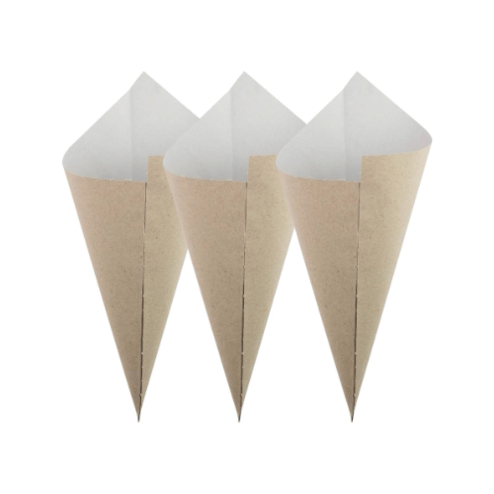Le cône en papier kraft pour friture est idéal pour les restaurants, les pizzerias et les lieux proposant des apéritifs. Mais la forme pratique du cône les rend également parfaits pour les friteries ou la restauration rapide et les kiosques qui veulent permettre aux clients de déguster leurs fritures tout en se promenant. Ce format est idéal pour les grandes portions de frites, mais aussi pour les fruits de mer frits ou les frites mixtes. Bref, tout ce qui peut être frit peut être servi dans ces cônes en papier kraft pour la friture.