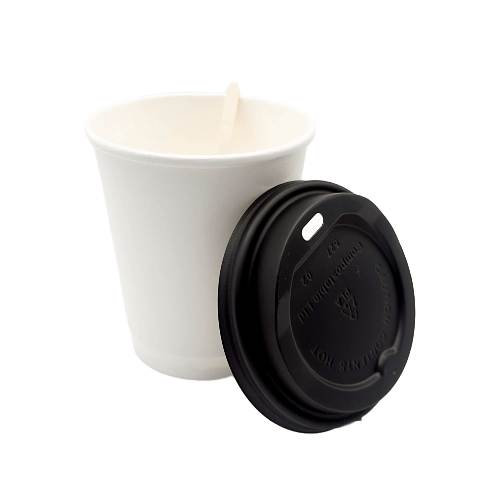 Les gobelets sont en papier, à double paroi, avec une fine couche d’acide polylactique à l’intérieur. Ce dernier permet d’assurer la compostabilité du produit tout en l’empêchant de s’effriter au contact des boissons chaudes.