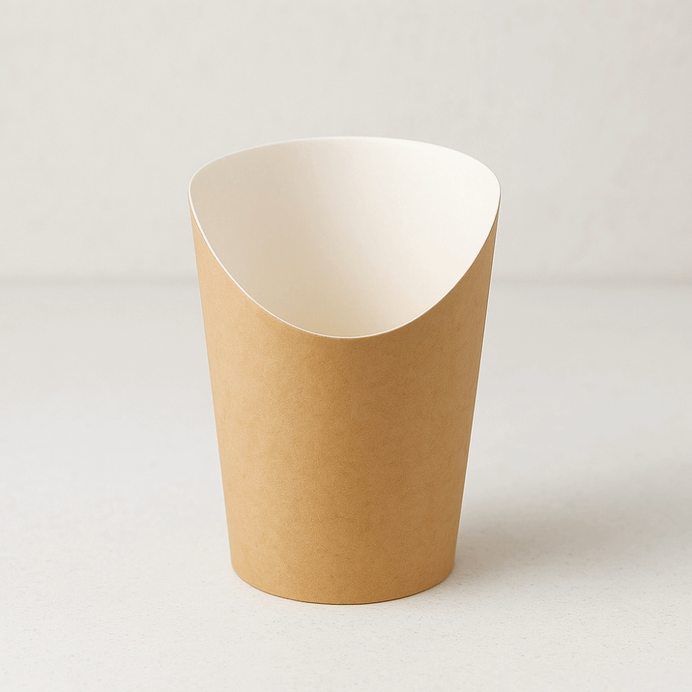 Polyvalent et pratique, notre gobelet à frites reste entièrement compostable tout au long de son cycle de vie. Une fois l’en-cas consommé, vous pouvez jeter le contenant dans la fraction humide compostable.