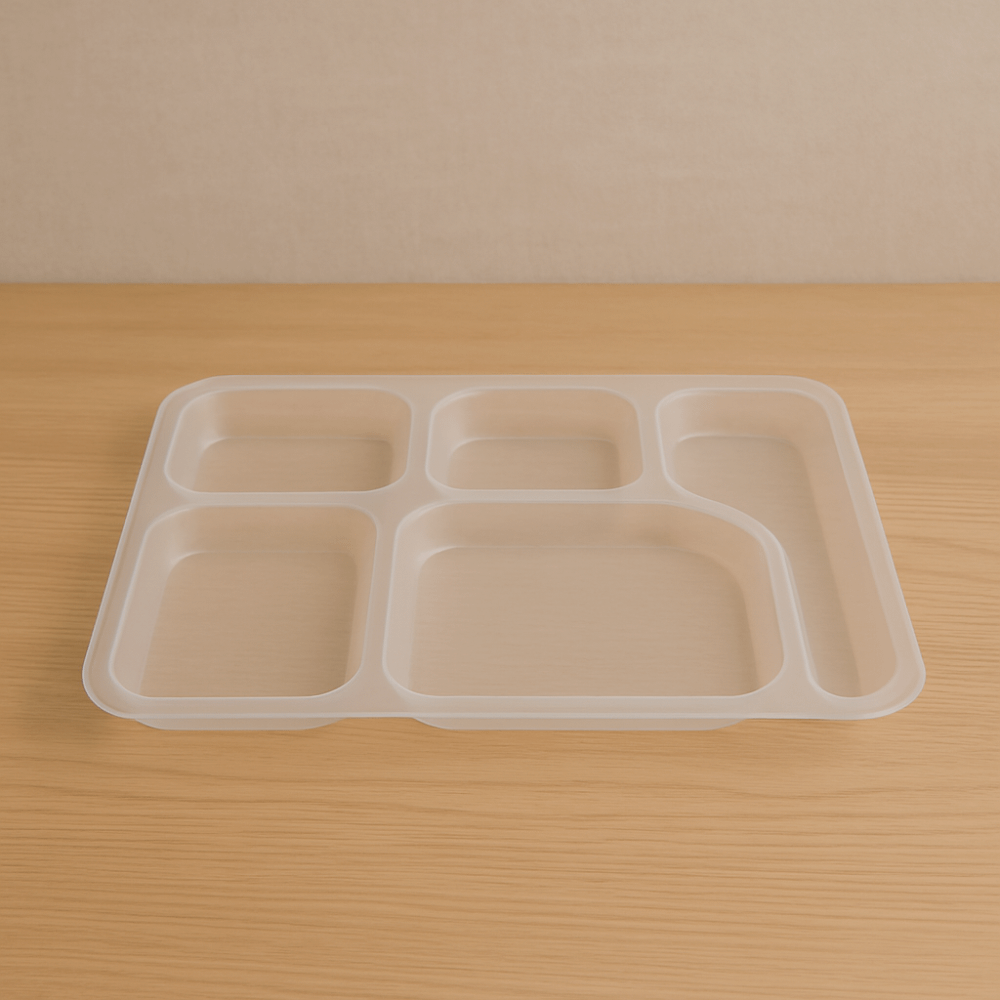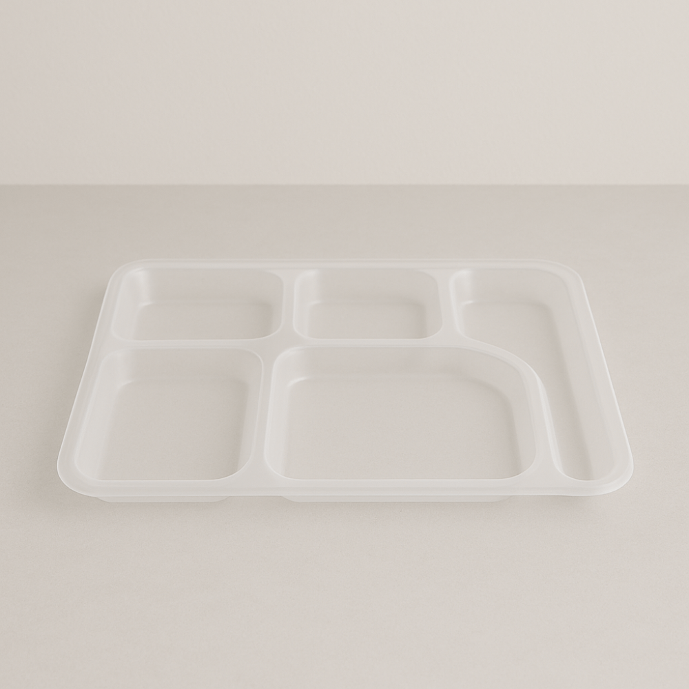 Le tissu jetable pour le plateau à 5 compartiments est fabriqué à partir d’un biopolymère compostable.