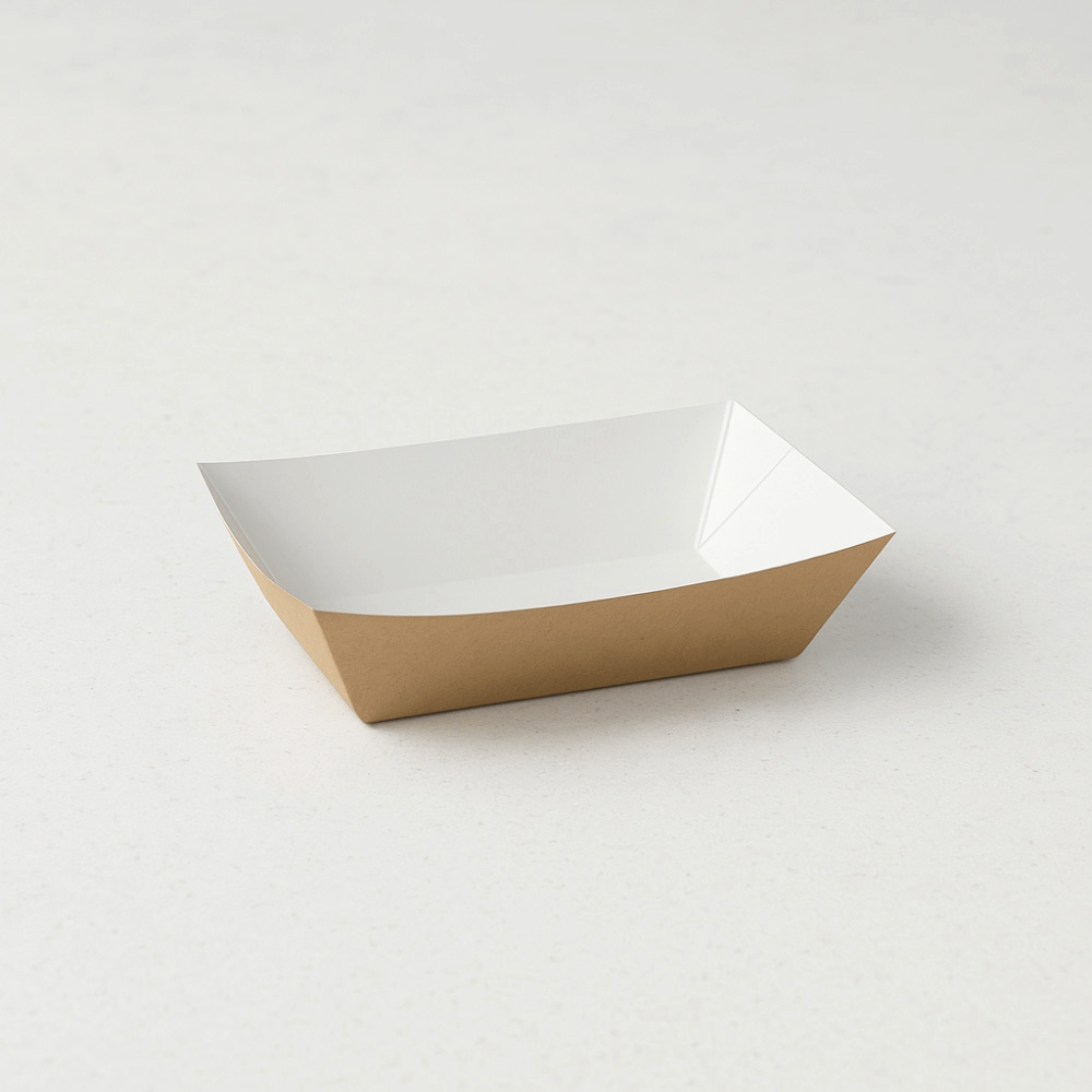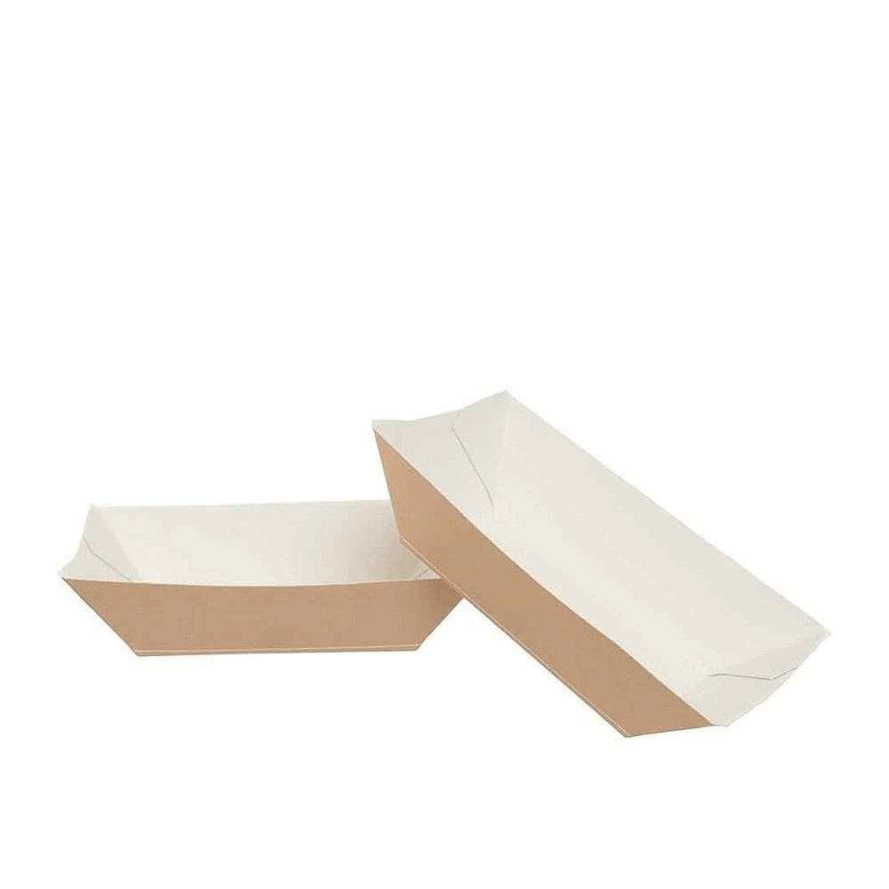 Les assiettes pour camion alimentaire peuvent contenir des produits froids et chauds jusqu’à 70°C et ne conviennent pas pour le four à micro-ondes. Elles sont idéales pour servir des noix, des chips, du pop-corn, de petites portions d’aliments frits et des en-cas de toutes sortes. La fine pellicule en PLA, un biomatériau extrait de l’amidon de maïs, imperméabilise les bateaux, ce qui les rend polyvalents et prêts à contenir des aliments humides, gras, frits, huileux et des sauces.