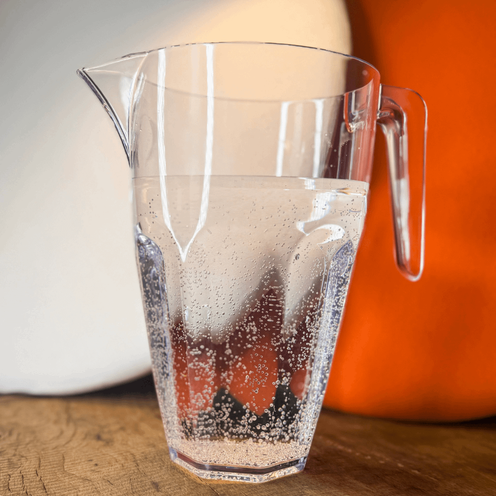 Cette carafe en plastique réutilisable donne une touche rétro à la table et peut être une idée originale dans une ferme, un restaurant ou une pizzeria. Mais à notre avis, la carafe en plastique transparent est aussi une solution parfaite pour un usage domestique. Et que dire des bars, des cantines scolaires ou des pubs ? Et pourquoi ne pas l’utiliser pour les cérémonies, les réceptions et les grands événements ? La carafe en plastique réutilisable est idéale pour tous les événements en plein air, afin de garantir une sécurité maximale aux clients et aux amis.