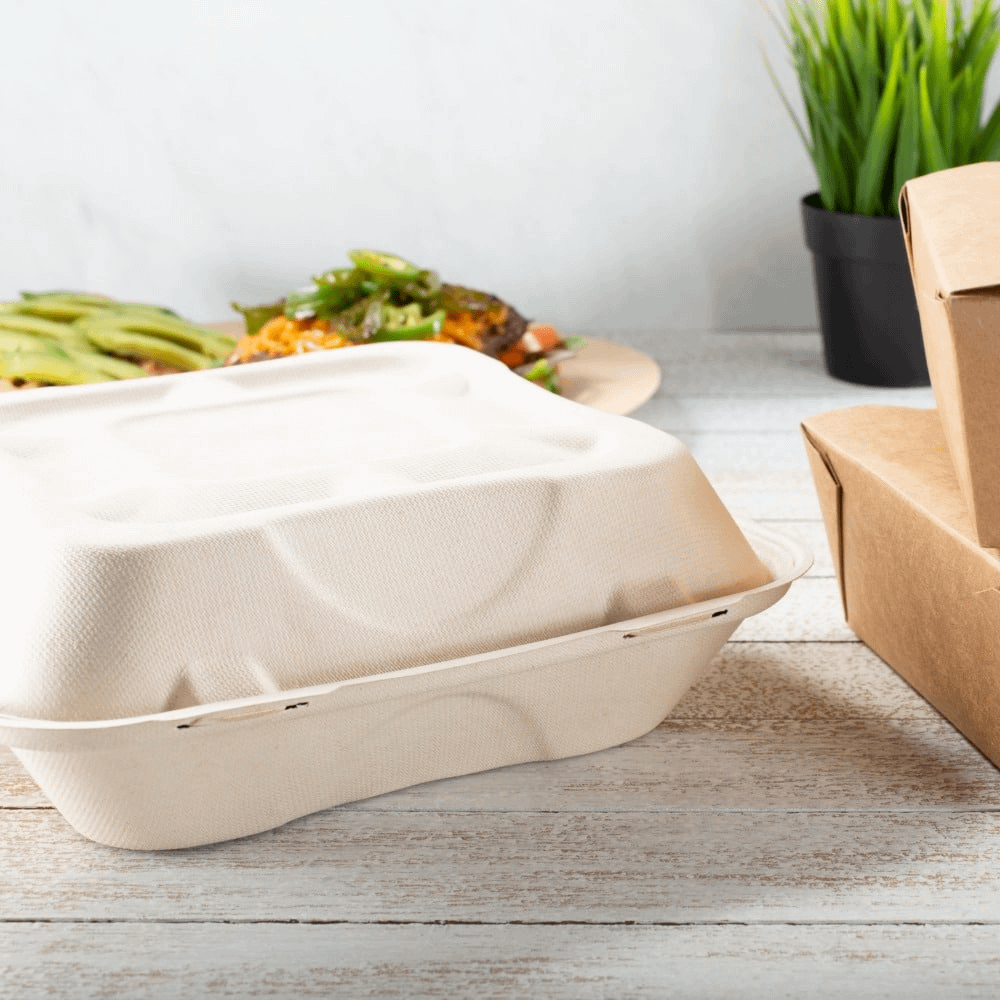 La pulpe de cellulose dont sont faites les boîtes à emporter est non seulement adaptée au contact avec les aliments en général, mais elle peut également être chauffée au four à micro-ondes. La fine couche de PLA à l’intérieur permet de contenir des aliments même assaisonnés ou particulièrement gras. Leur taille leur permet d’emballer une grande variété de préparations, tant chaudes que froides.