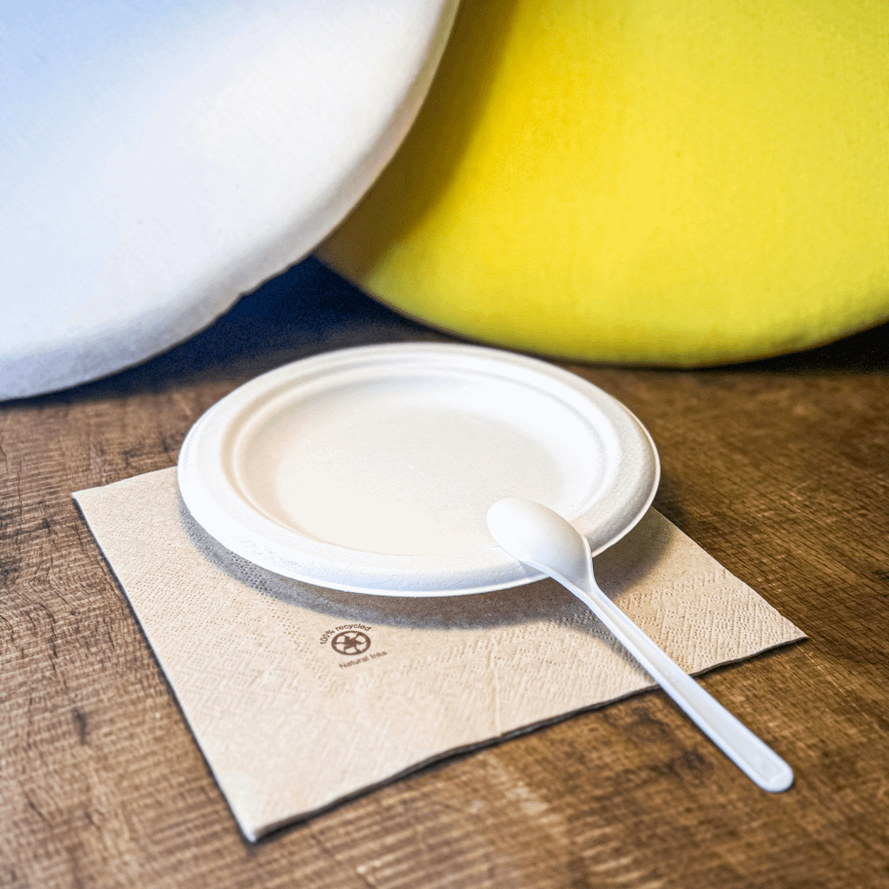 Nos soucoupes jetables sont certifiées selon Uni En 13432 et peuvent être jetées directement avec les déchets organiques, car elles sont 100 % biodégradables et compostables.
